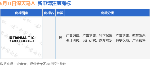 今年以来天马微电子股份有限公司新申请注册商标10件,截止目前公司共持有注册商标52件股票线上配资申请,另有17件商标尚在注册申请中。